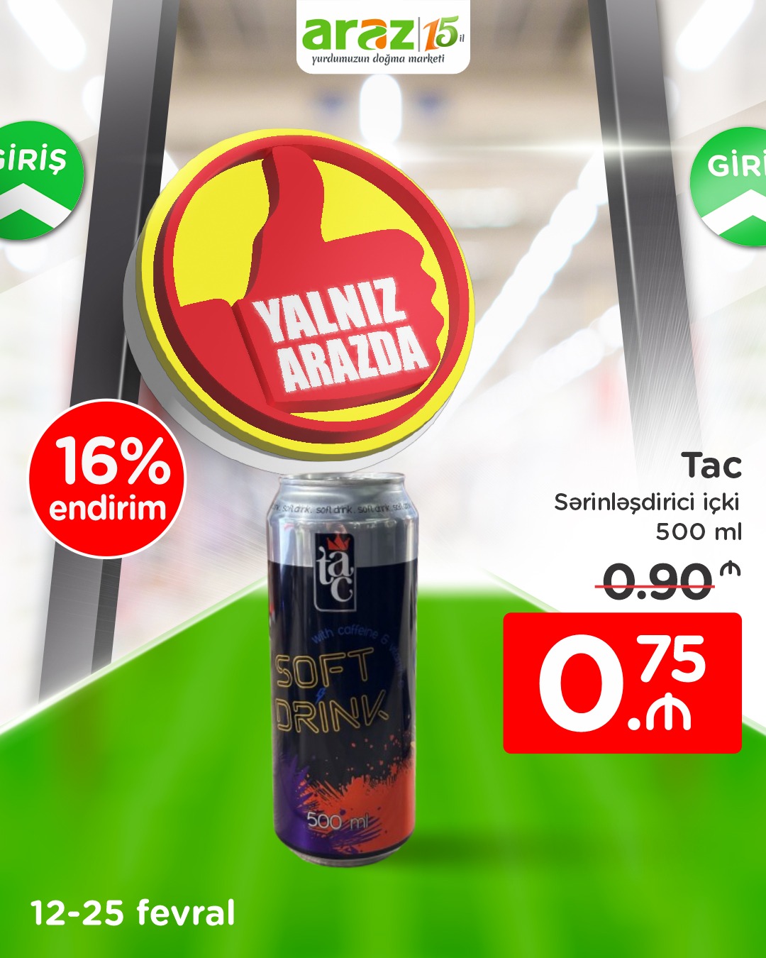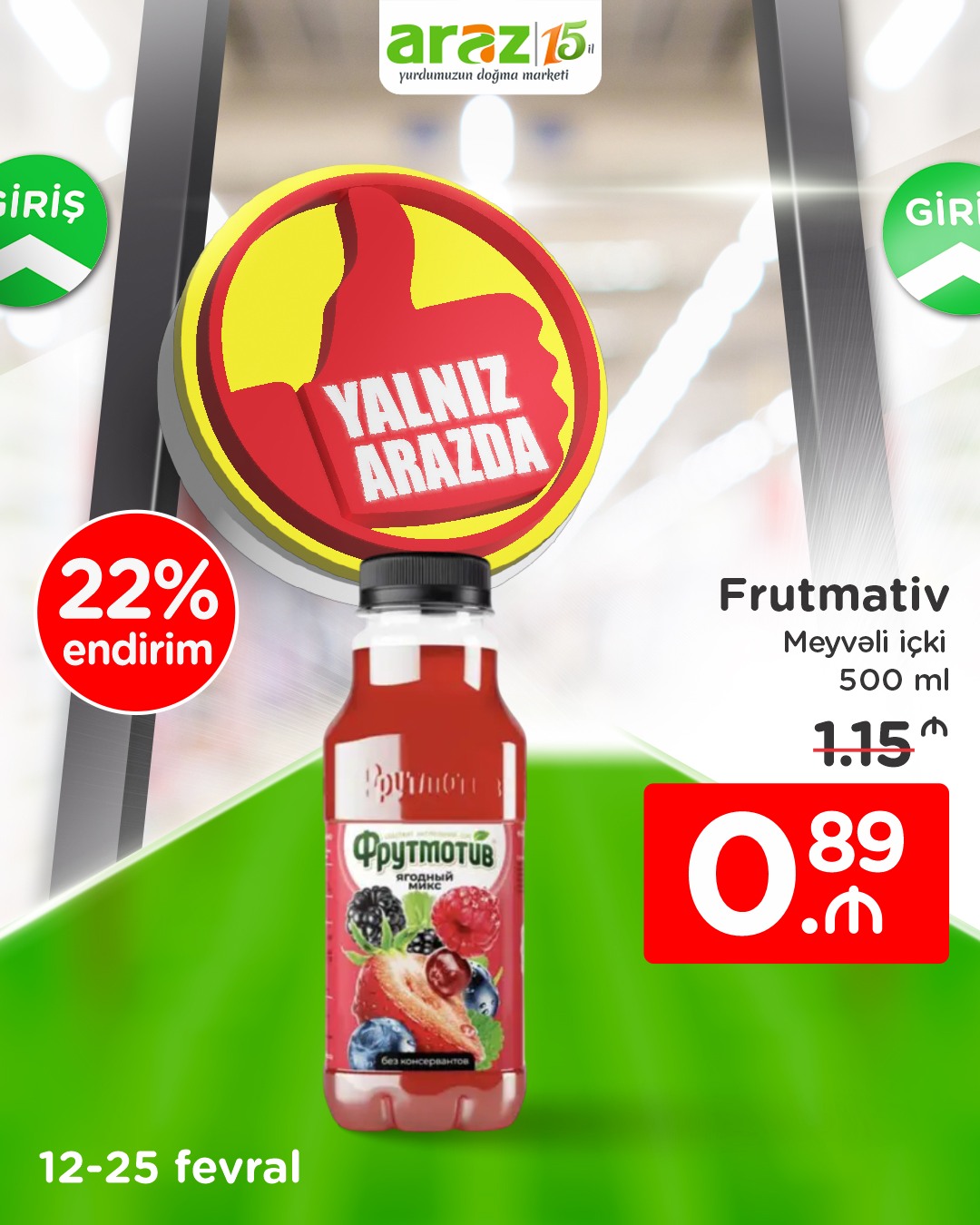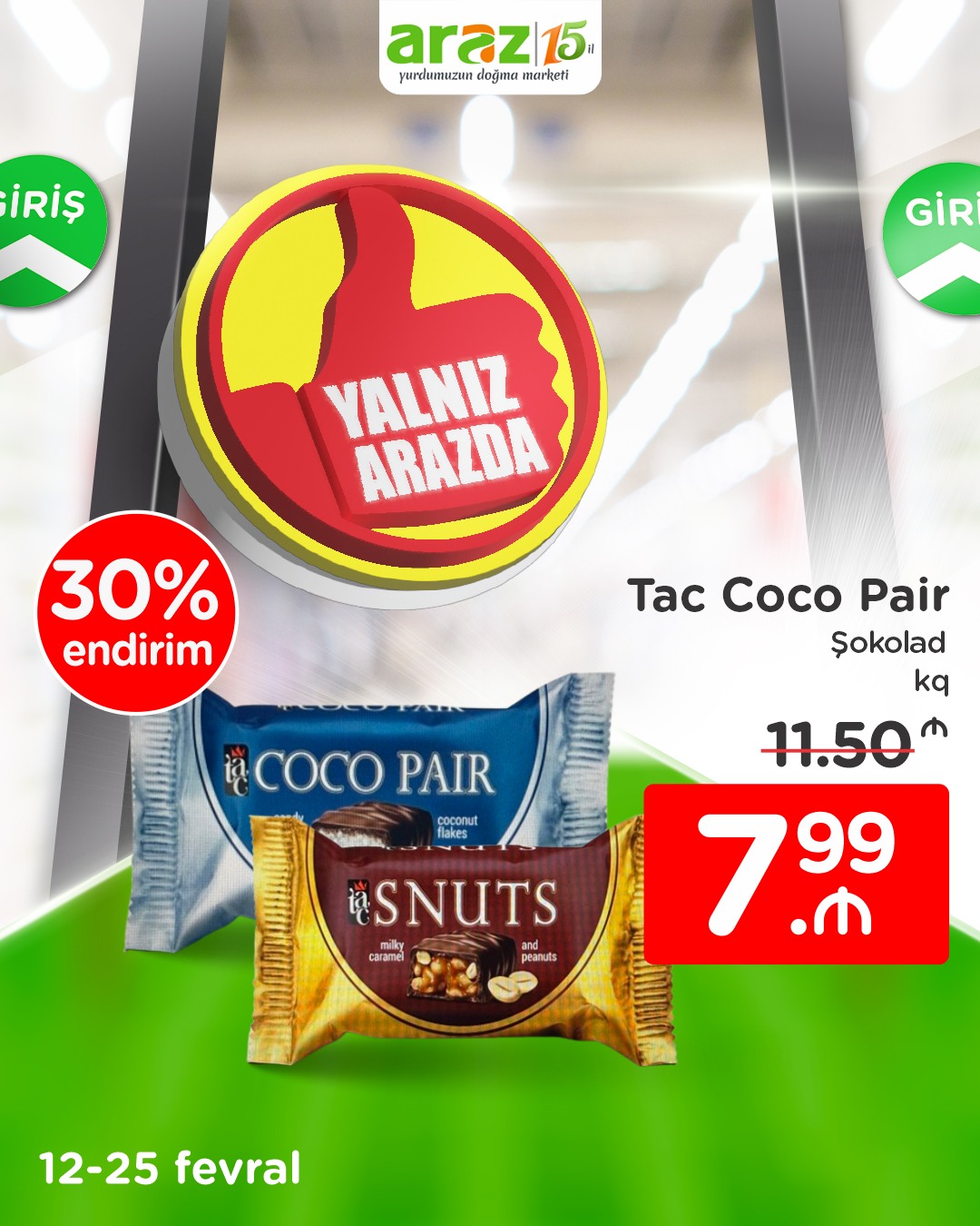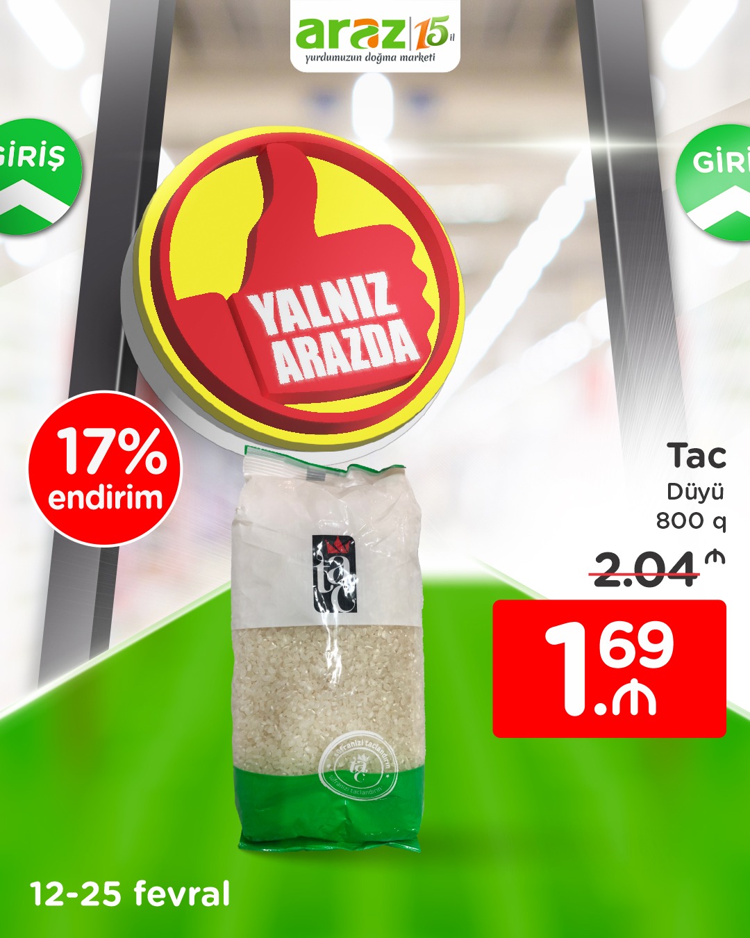 Dəyərli izləyicilərimiz, 25 fevral tarixinədək seçilmiş məhsulları yalnız “Araz”dan münasib qiymətlərlə əldə edə bilərsiniz.