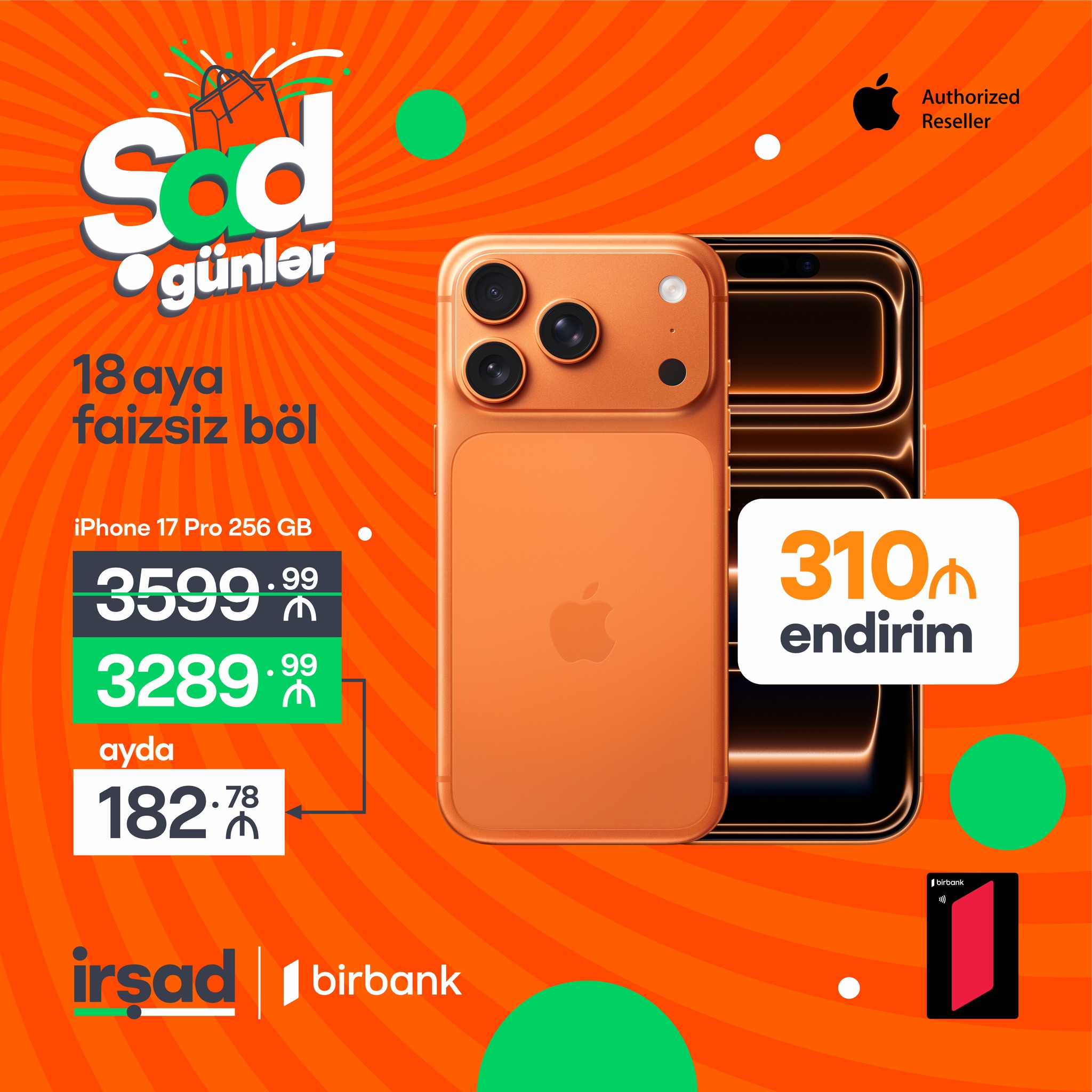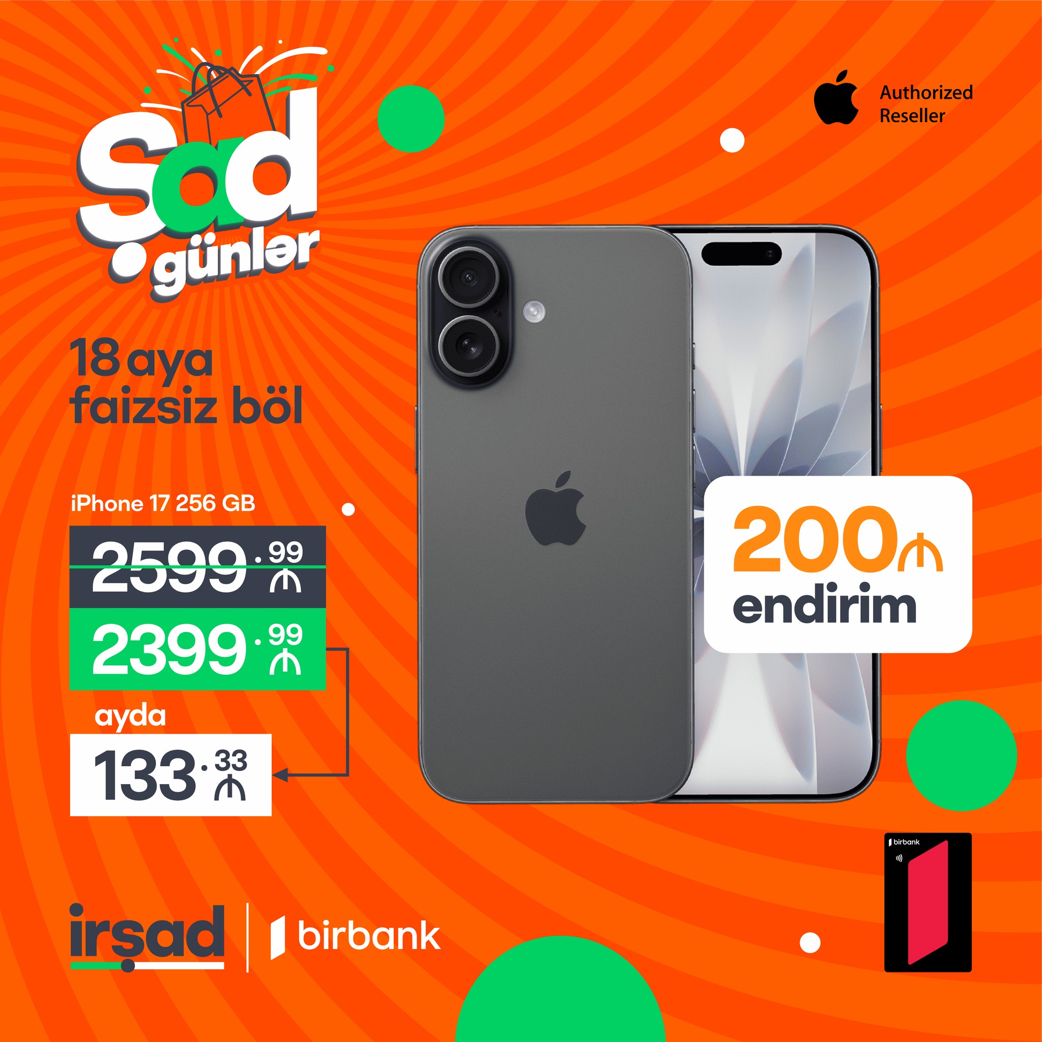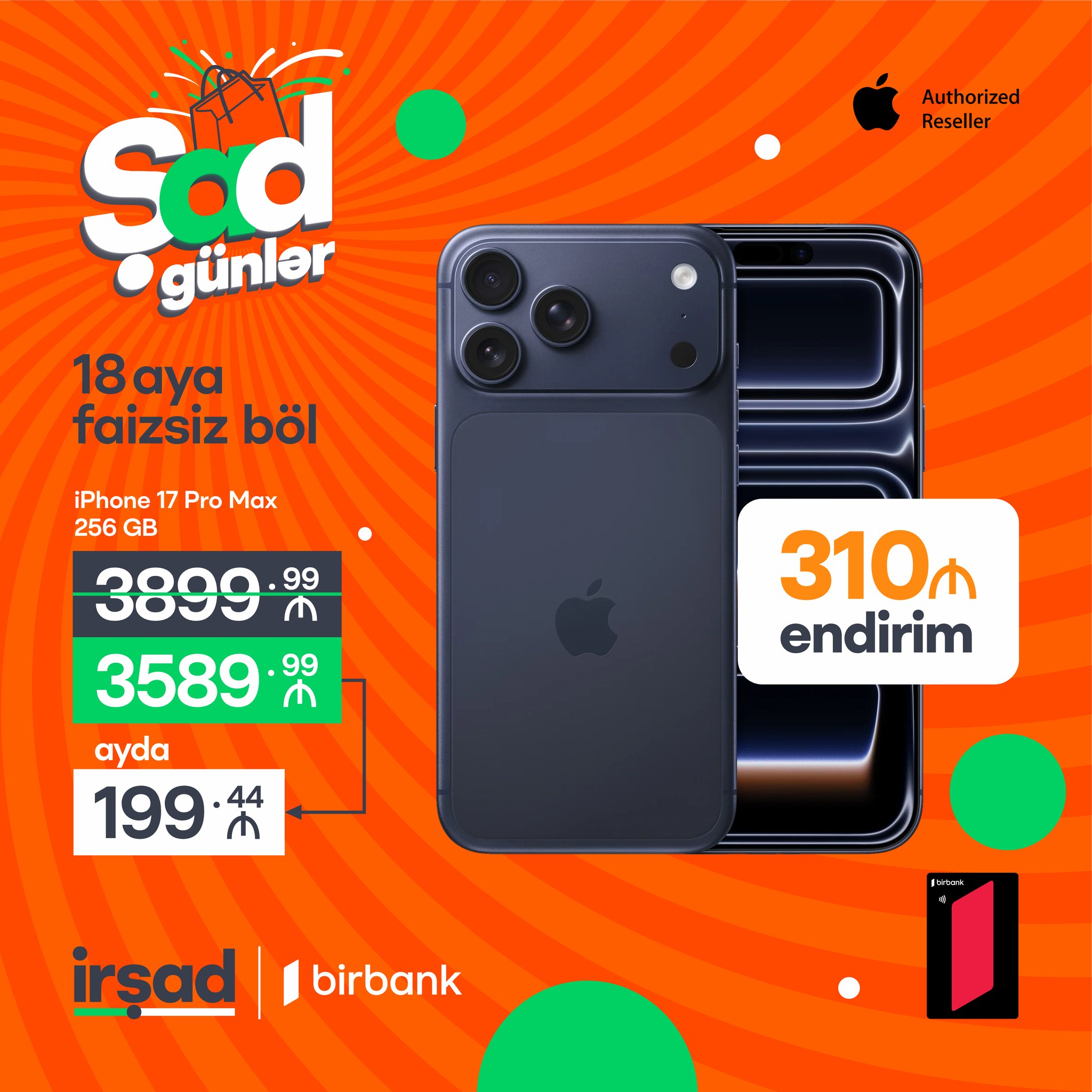 10-19 aprel tarixlərində Şad Günlər kampaniyasından faydalan, Birbank Taksit kartınla endirimli qiyməti 18 aya tamamilə FAİZSİZ böl!⚡️