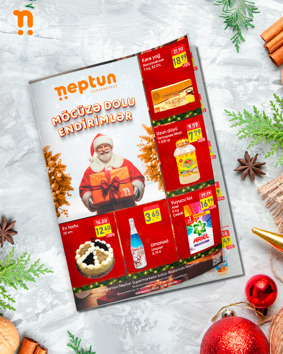 Əziz izləyicilərimiz, 16 –31 dekabr tarixlərində mağazalarımıza gələrək Neptun-un bol çeşidli və sərfəli endirimlərini qaçırmayın!
